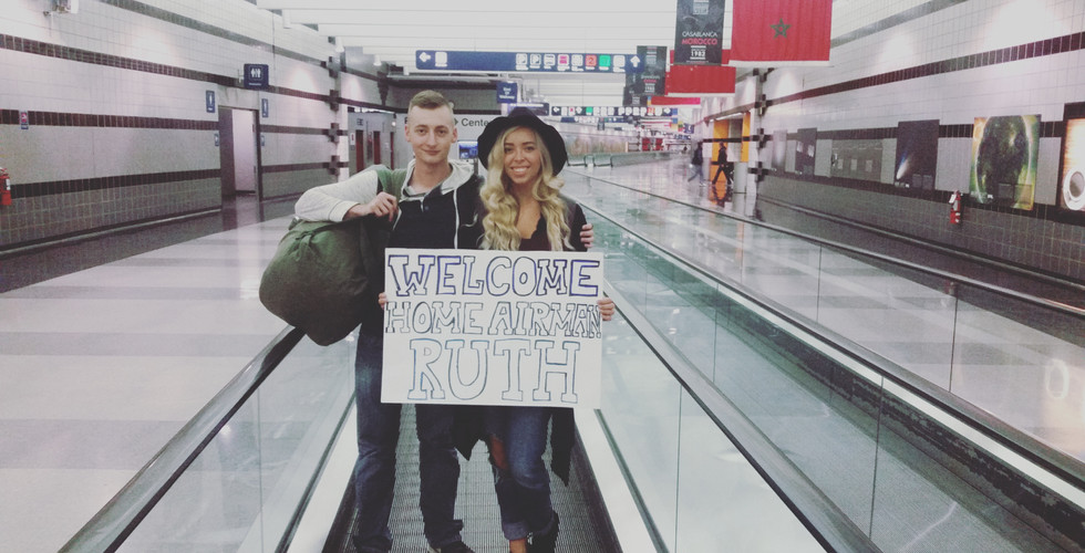 We did a lot of walking around again and headed to the airport. We came a little early but thankfully found a starbucks and I got a chai peach tea and Sheila got a chocolate banana smoothie. His flight arrived earlier than expected around 11 P.M.. All day I had been telling him I could not make the trip because I was sick, and I also didn't tell him I dyed my hair (an icy shade of blonde) or that his Mom and I worked on a "welcome home" sign. His parents and I worked together to surprise when he came off the plane so he wouldn't see my face or hair and only see the sign. I had never seen him this surprised and shocked before! We picked up his bags and had a late night ride home catching up.